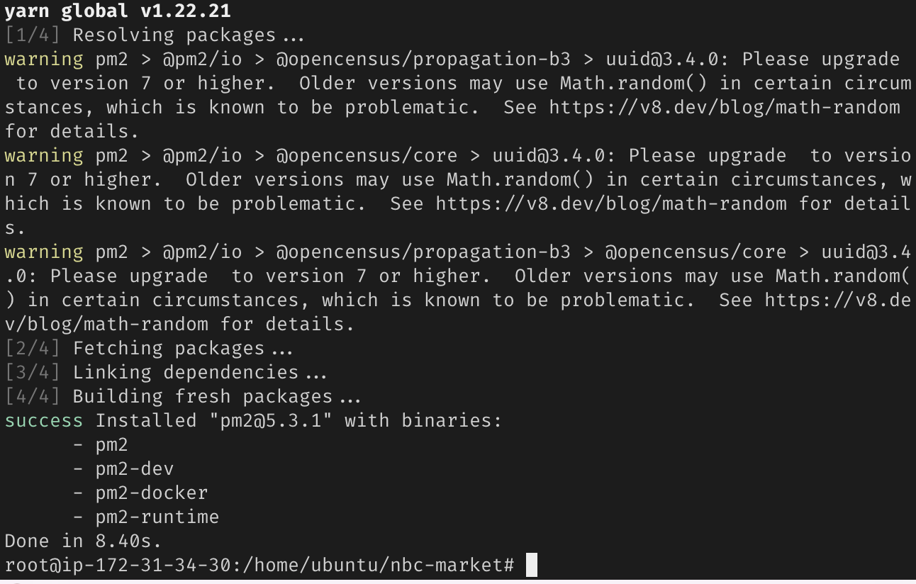 - sudo npm install -g yarn : yarn을 사용하기 위해 전역적으로 설치해 준다.
