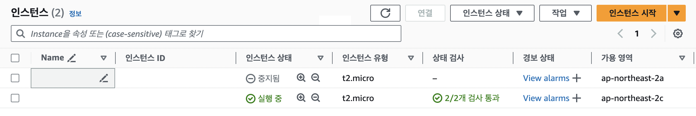 위에있는 인스턴스 시작을 눌러 새로운 인스턴스를 생성해 준다.