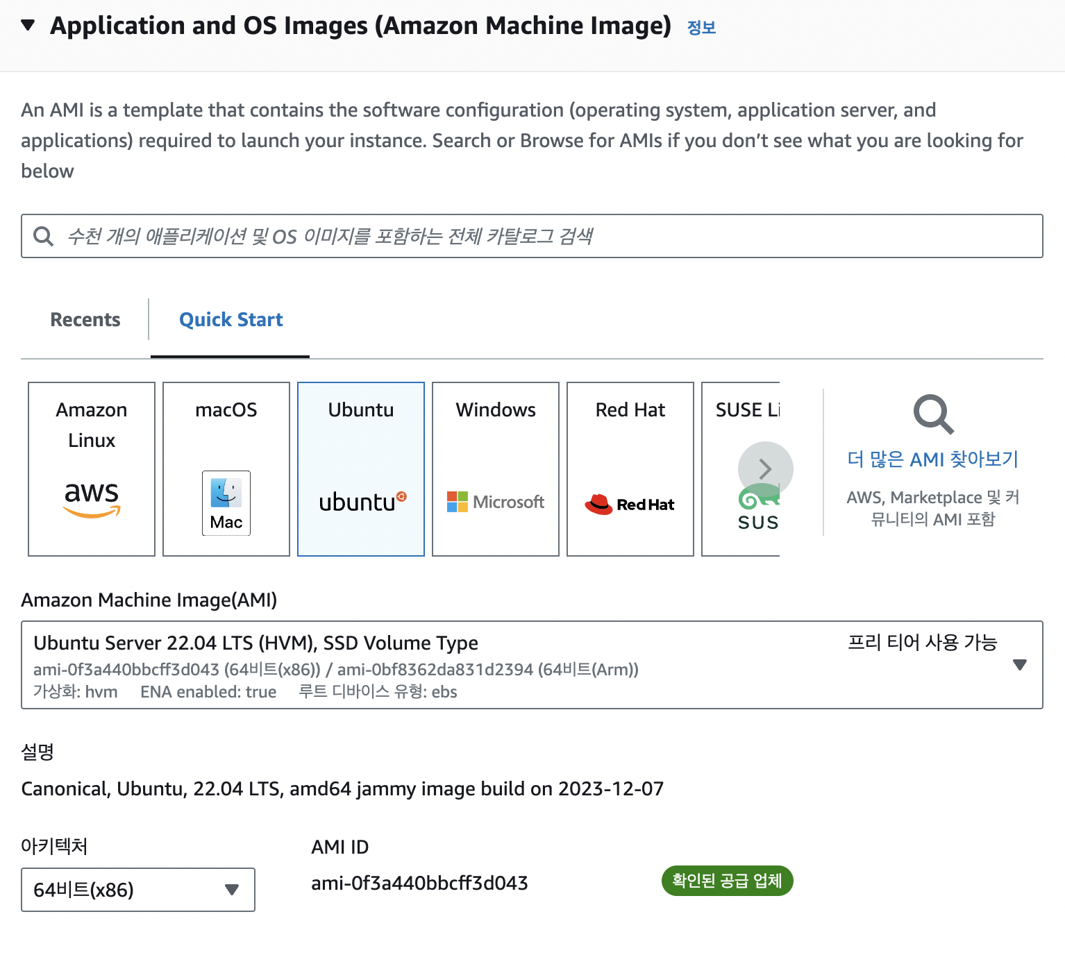 ubuntu로 설정해주고 프리티어가 있는 설정들로 세팅해준다.
