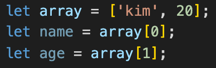 array안에 있는 데이터를 변수로 쉽게 저장하고 싶을때 사용하는 문법이다.