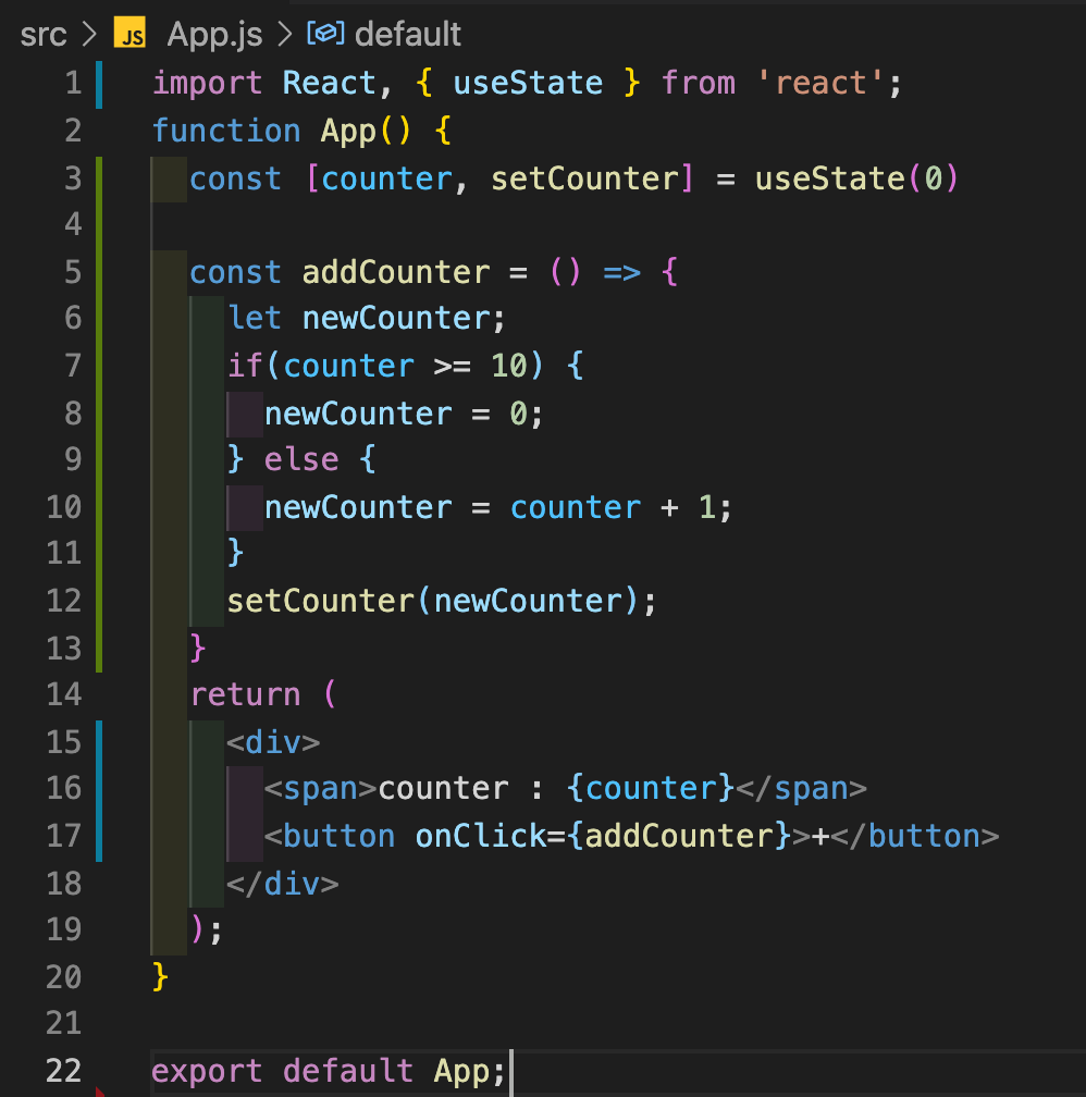 App이라는 컴포넌트 안에서 state로 counter라는 state를 가질 수있다.